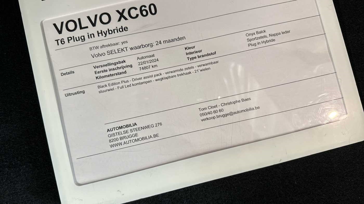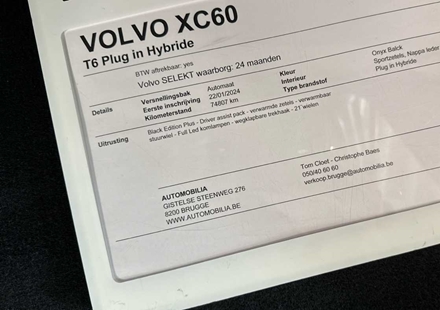 Black Edition Plus, T6 AWD Plug-in hybride | Adpat Cruise | Pano dak | TrekhaakWinter PackSièges avant chauffantsSellerie en tissu/similicuir/cuir Nappa Volant sport gainé de simili-cuir Sièges Sport à l'avant Boîte de vitesses automatique Geartronic™ à 8 rapports Pédalier Pommeau de levier de vitesses en cristal Orrefors® Climatisation 2 zones avec buses de ventilation à l'arrière Fonction de pr ...