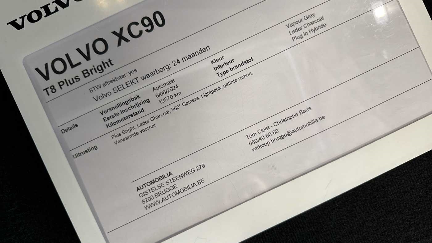 Plus Bright T8 AWD Hybride | 7 zit | 360° Camera | Lightpack 360 graden camera met bovenaanzicht Donkergetinte achterruiten Verwarmbare voorruit met elektrische ontdooiingsfunctie Schakelpookknop in simili-leder bekleed Hemelbekleding in Blond Metal Mesh aluminium sierinleg Leerbekleding Stuurwiel op maat. Charcoal Comfort-voorstoelen 8-traps Geartronic™-automaat Pedalen Airconditioning voor de ...