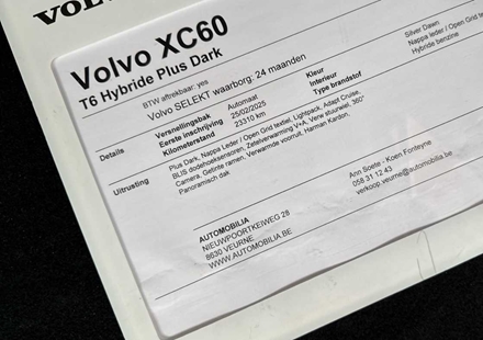 Plus Dark T6 AWD Hybride | Pano dak | Harman Kardon | Adapt Cruise 360 graden camera met bovenaanzicht Donkergetinte achterruiten Verwarmbare voorruit met elektrische ontdooiingsfunctie Harman Kardon Premium Sound Kristallen versnellingspook van Orrefors® Charcoal hemelbekleding Metal Mesh aluminium sierinleg Bekleding van nappaleer/kunstleer/textiel Sportstuur met simili-leder bekleed Contour-v ...