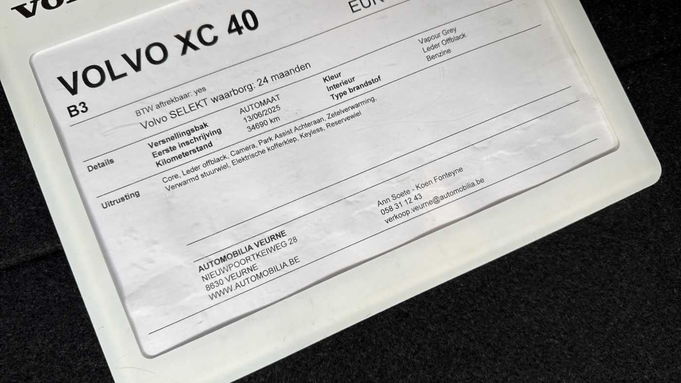 Volvo XC40 Core B3 Mild hybride Benzine | Leder | Camera | Keyless